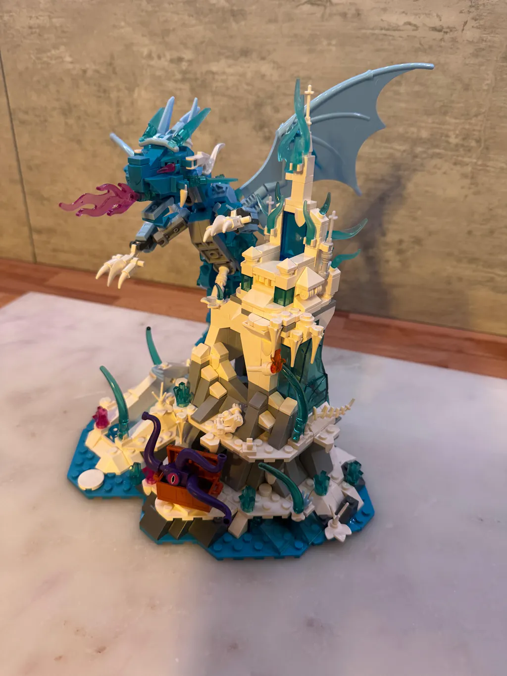 I picked this set up on a secondary seller’s website. I really enjoyed the build. The base is very sturdy and required no modifications to ensure that it’s kid proof. The dragon is also very nicely designed but I would recommend making some modifications to the limbs and head to shore it up. I basically included ball joints where they don’t exist and a some swapping of parts in the head to make it more stable.